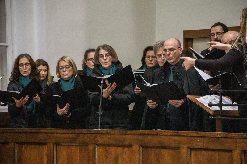 Nagy múltra tekint vissza a jelenleg Hacknauer Bettina vezetésével működő Budavári Schütz kórus, amely magas színvonalon adta elő Wolfgang Amadeus Mozart és Csorba István egy-egy művét. Ez utóbbi darabot a szerző a 2017-es reformáció-emlékévhez kapcsolódó pályázatra írta, és nagyon ötletesen rejtette bele a minden evangélikus által ismert hitvallást, tanúságtételt, „evangélikus himnuszt”, az Erős vár a mi Istenünk (EÉ 254) Luther-korált.